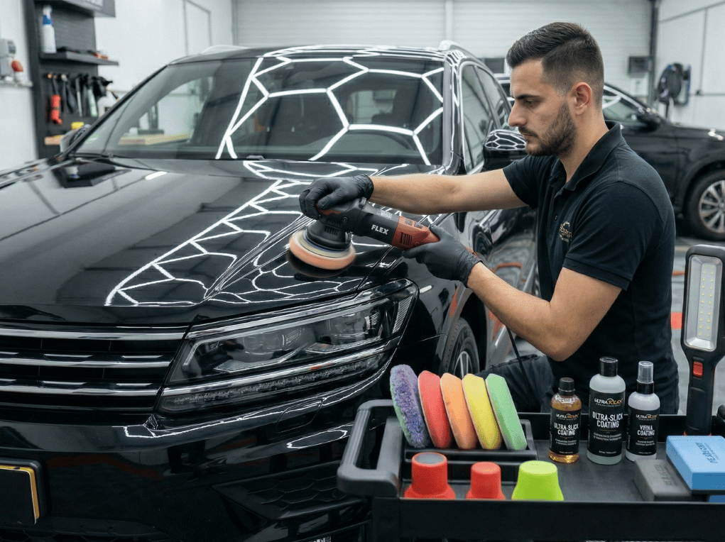 L’utilisation de microfibres premium et de nettoyants spécifiques garantit des vitrages et un pare-brise sans la moindre trace, vous assurant une visibilité parfaite.